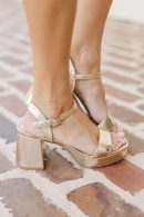These shiny gold heels are sure to step up any outfit you pair them with! They are so bold and fun! That shiny metallic hue is perfect for fun nights out!